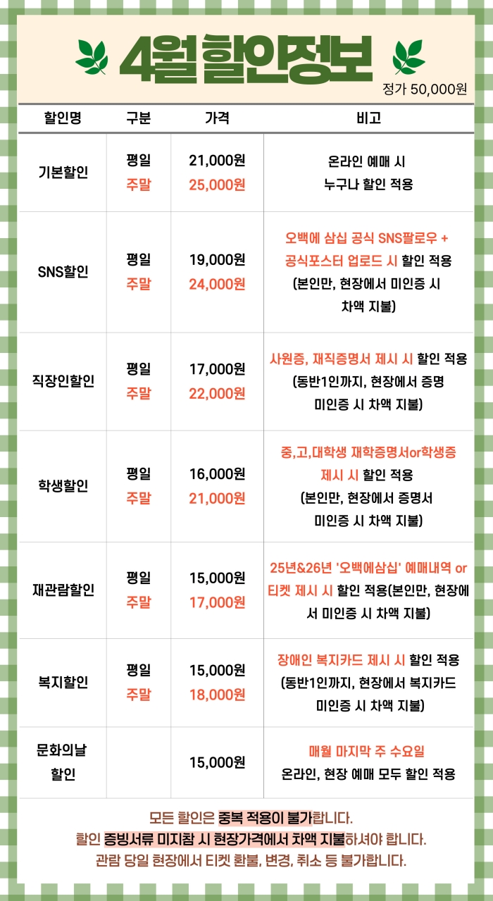 | 유효기간(이용조건) | 2025년02월01일(토) ~ 2026년04월30일(목) (예매한 공연일시에 한해 이용 가능) | ||||||||